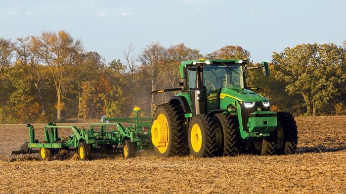 Tractor que puede operar sin conductor, con inteligencia artificial y sensores de precisión.