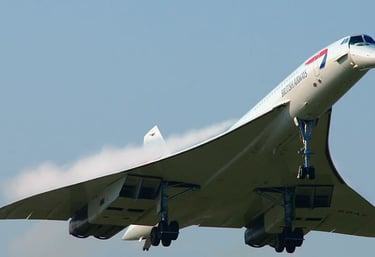Primer avión comercial supersónico, símbolo de lujo y velocidad.